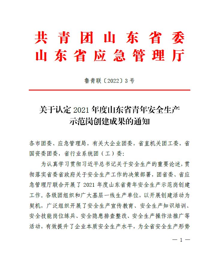 1月5日,“2021年度山東省青年安全生產(chǎn)示范崗”評(píng)選結(jié)果揭曉,水發(fā)能源集團(tuán)旗下沂南力諾太陽(yáng)能電力工程有限公司榮獲“山東省青年安全生產(chǎn)示范崗”榮譽(yù)稱號(hào)。