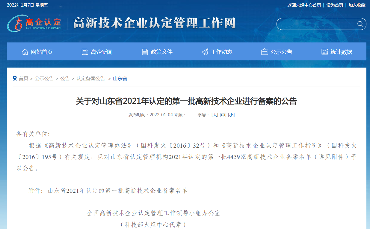 2022年1月4日,全國(guó)高新技術(shù)企業(yè)認(rèn)定管理工作領(lǐng)導(dǎo)小組辦公室發(fā)布《關(guān)于對(duì)山東省2021年認(rèn)定的第一批高新技術(shù)企業(yè)進(jìn)行備案的公告》。據(jù)公告顯示,山東奧翔電力工程設(shè)計(jì)咨詢有限公司被列入《山東省2021年認(rèn)定的第一批高新技術(shù)企業(yè)備案名單》。